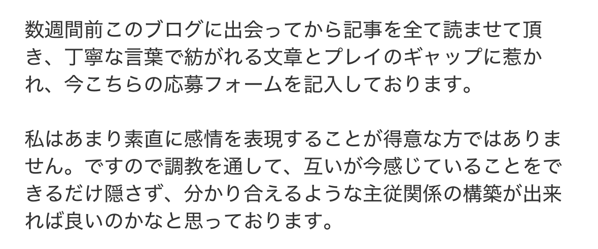 それゆえに実際に会う前から僕が行っている主従関係やSM調教の解像度は高かった。